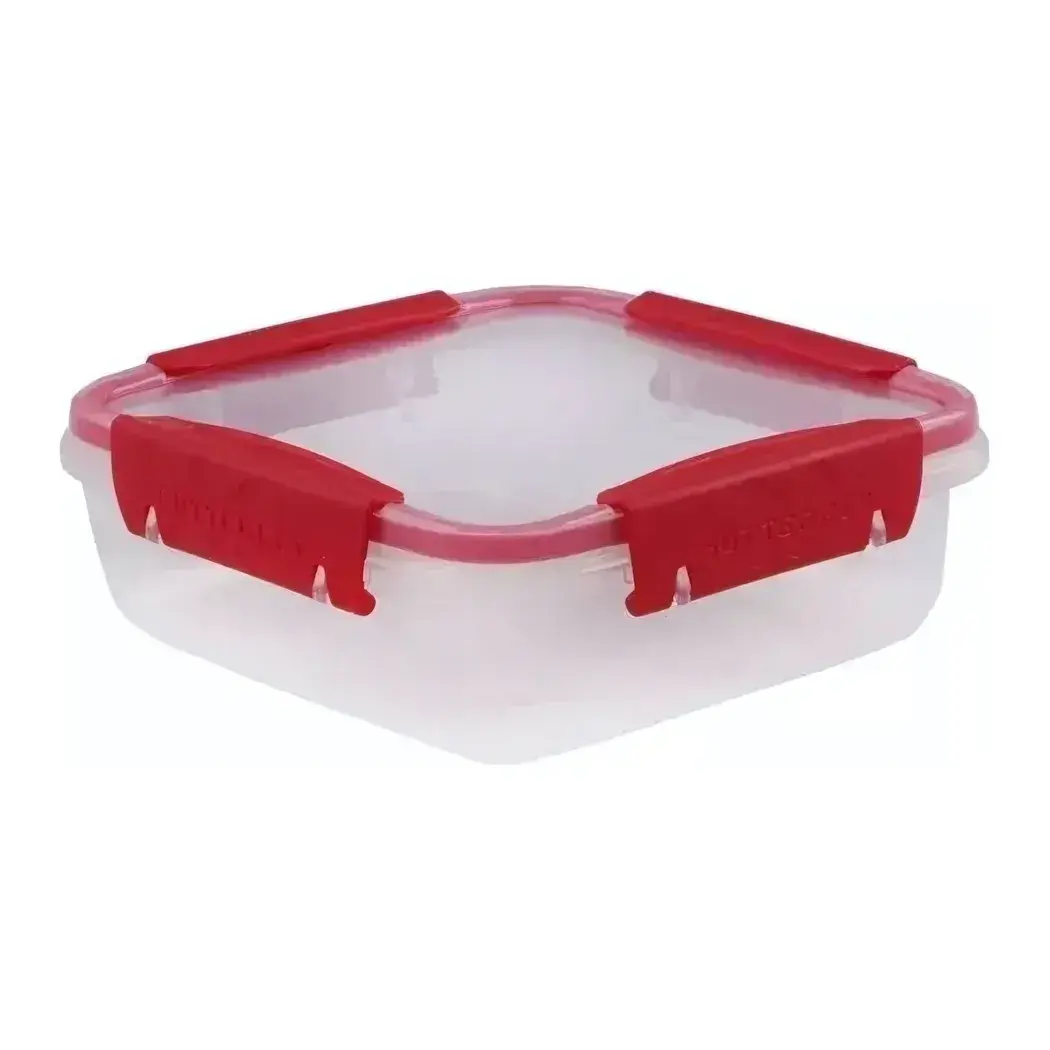 Корпус из пищевого пластика устойчив к деформации и запахам. Закругленные углы предотвращают скапливание грязи, а плоская крышка позволяет ставить контейнеры друг на друга. Яркие красные фиксаторы добавляют стильный акцент в интерьер кухни.