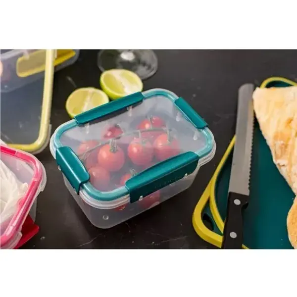 Контейнер для продуктов объемом 0,75 литра — это идеальное решение для хранения ваших любимых блюд. Благодаря герметичному закрытию, вы можете быть уверены, что ваши продукты останутся свежими и вкусными на долгое время. Прозрачный корпус позволяет легко видеть содержимое, а голубая крышка с надежными зажимами обеспечивает плотное закрытие, предотвращая попадание загрязнений и бактерий.