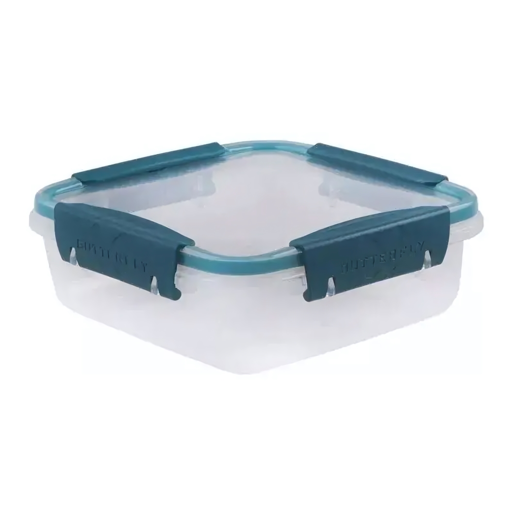 Контейнер Butterfly bright идеально подходит для хранения самых разнообразных продуктов: от сыпучих круп и макарон до готовых блюд и свежих овощей. Его квадратная форма обеспечивает оптимальное использование пространства в холодильнике или на кухонных полках. Четыре надежных темно-синих зажима не только гарантируют герметичность, но и обеспечивают легкое открытие и закрытие контейнера. Надпись "BUTTERFLY" на зажимах придает контейнеру дополнительный стильный акцент.