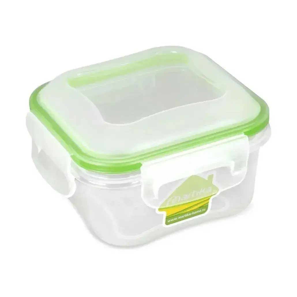 Изготовлен из безопасного пластика, не выделяющего вредных веществ. Зеленая крышка с силиконовым уплотнителем создает двойной барьер для влаги. Идеален для организации пространства на кухне, в офисе или для пикника.