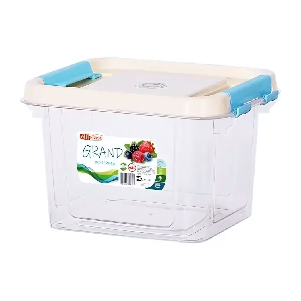 Объем 0.8 литра оптимален для порционного хранения. Прямоугольная форма экономит место на полках. Материал корпуса — ударопрочный пластик, устойчивый к перепадам температур. Цвет крышки (белый или голубой) отгружается в ассортименте — вы получите один товар случайного цвета из доступных вариантов.