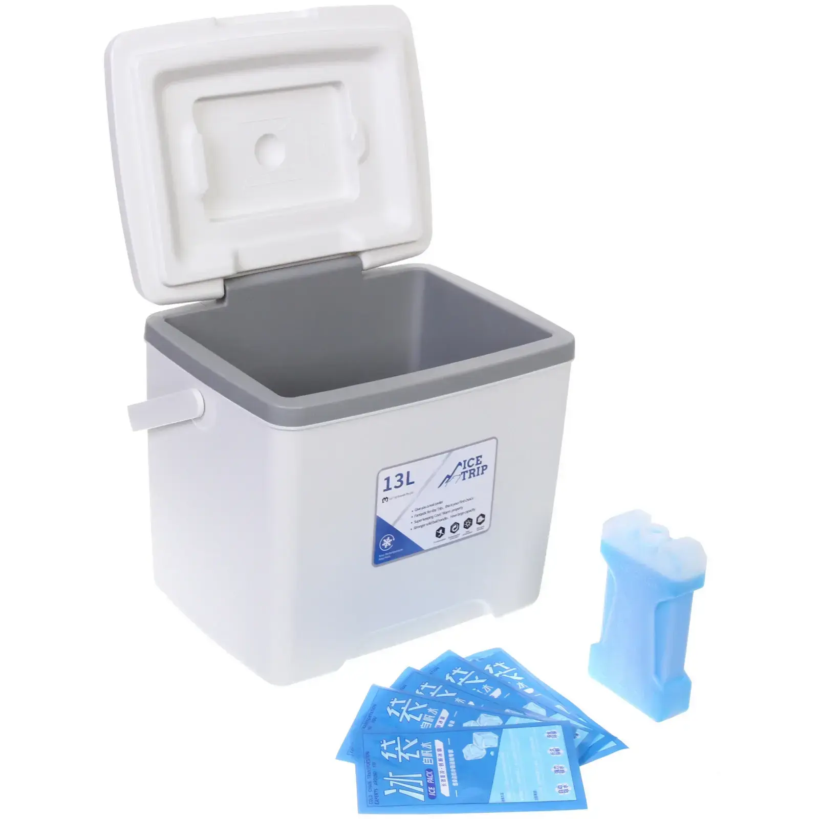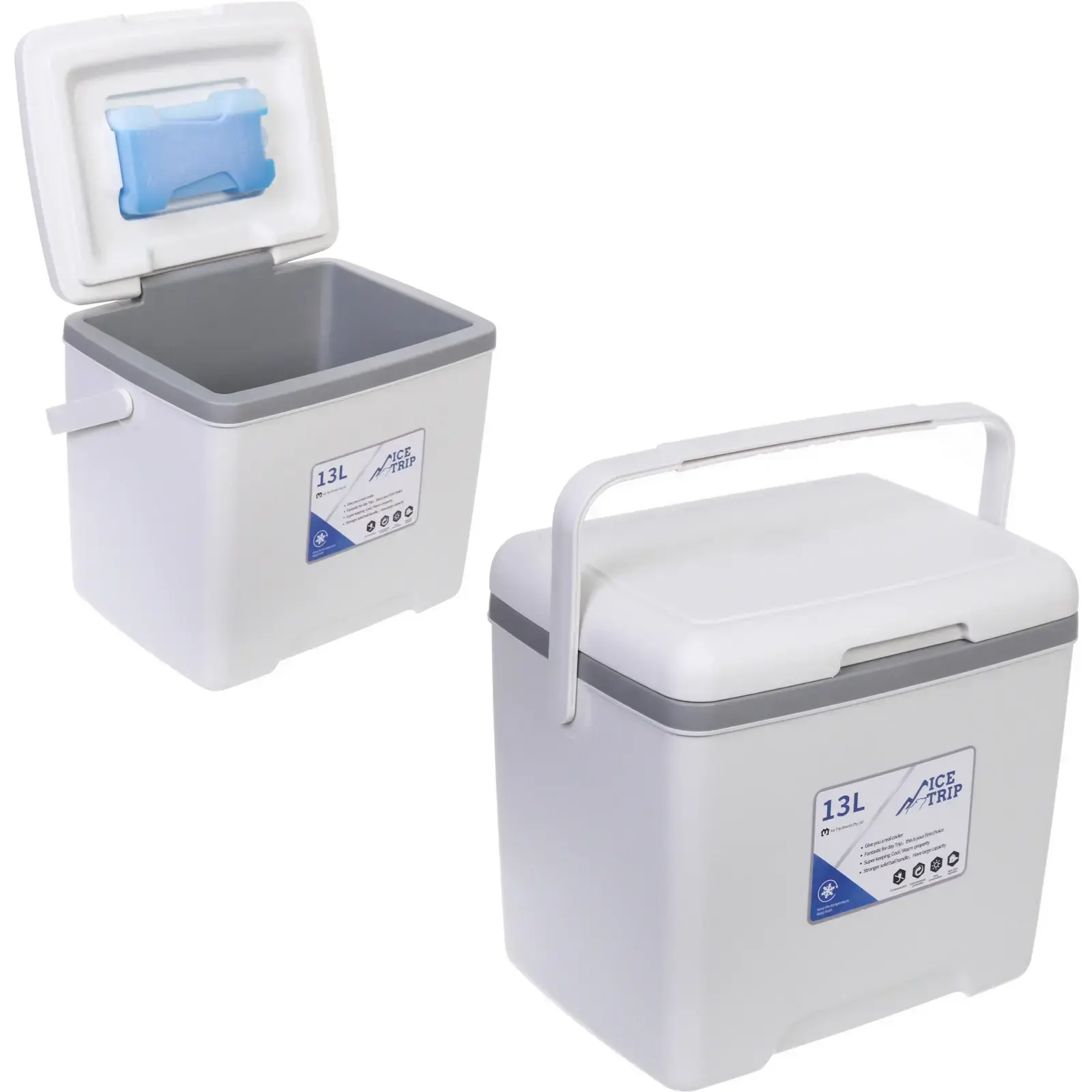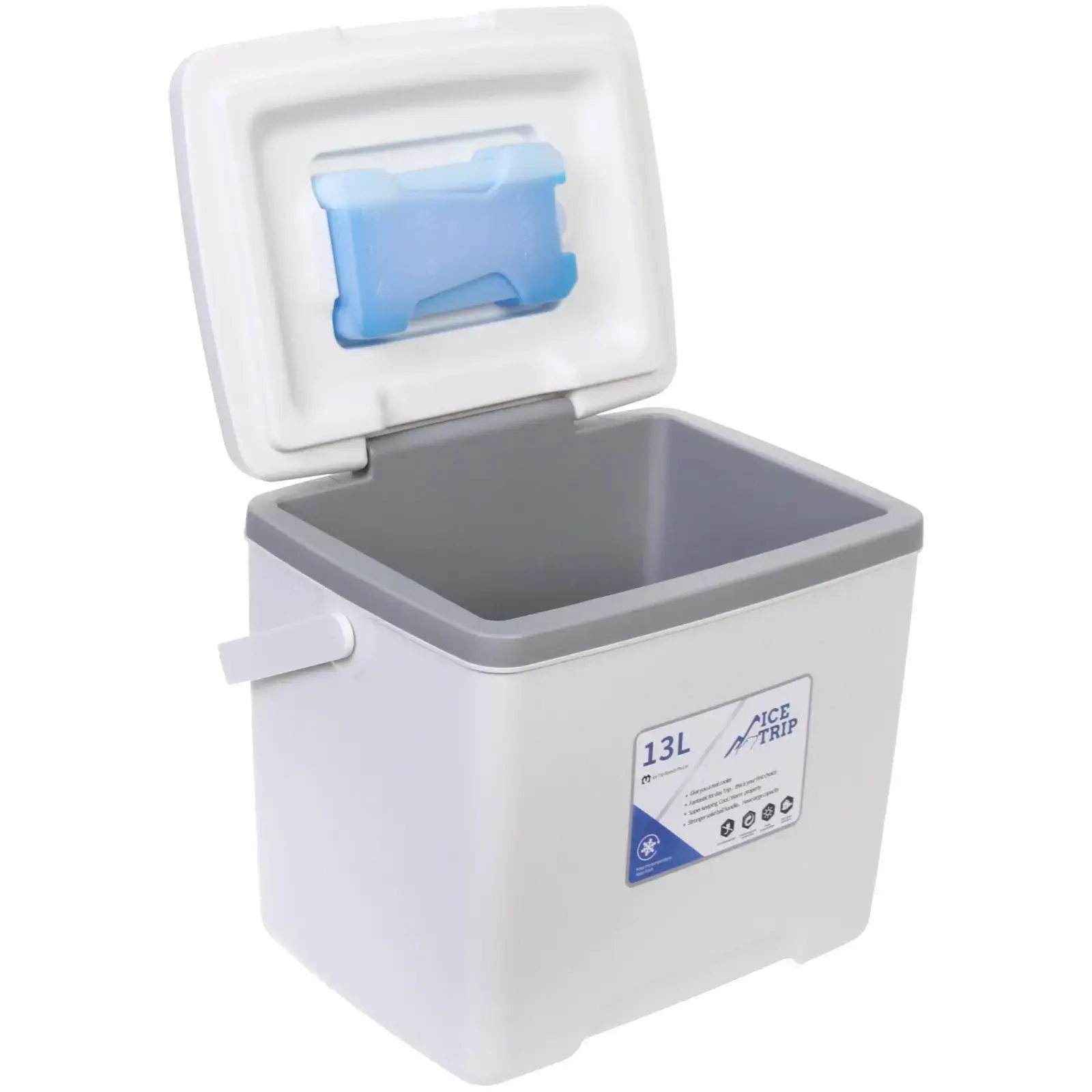 Представляем изотермический контейнер 'ICE TRIP' объемом 13 литров — идеальное решение для длительного сохранения температуры ваших продуктов и напитков. В комплекте вы найдете надежный аккумулятор холода объемом 400 мл, который обеспечивает эффективное охлаждение.