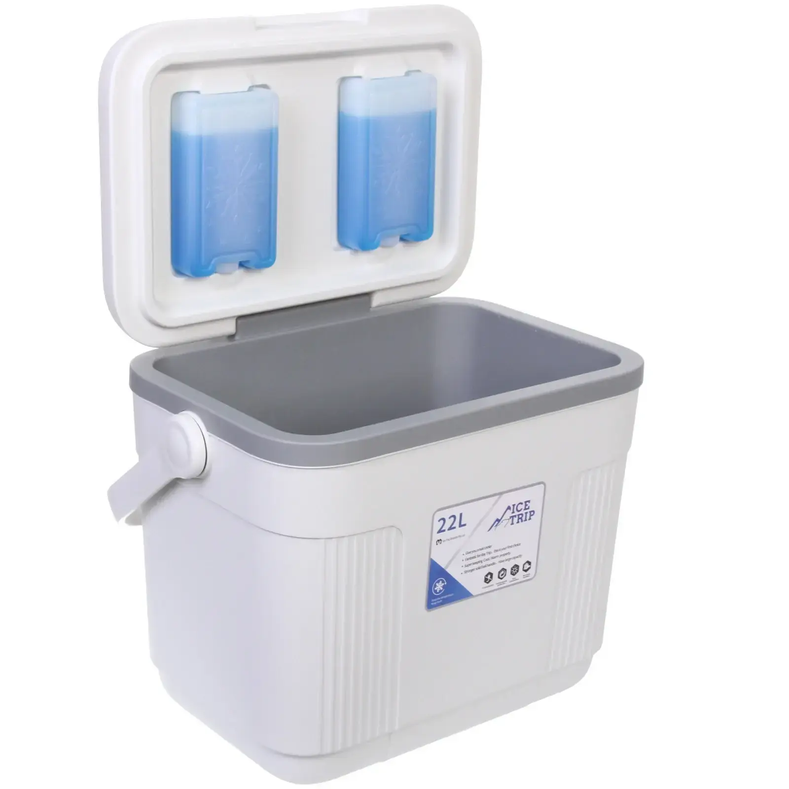 Контейнер изотермический объемом 22 литра с двумя аккумуляторами холода по 400 мл — идеальное решение для любителей активного отдыха и путешествий. Этот контейнер поможет сохранить ваши продукты и напитки в охлажденном состоянии на протяжении длительного времени, обеспечивая комфорт и удобство в любых условиях.