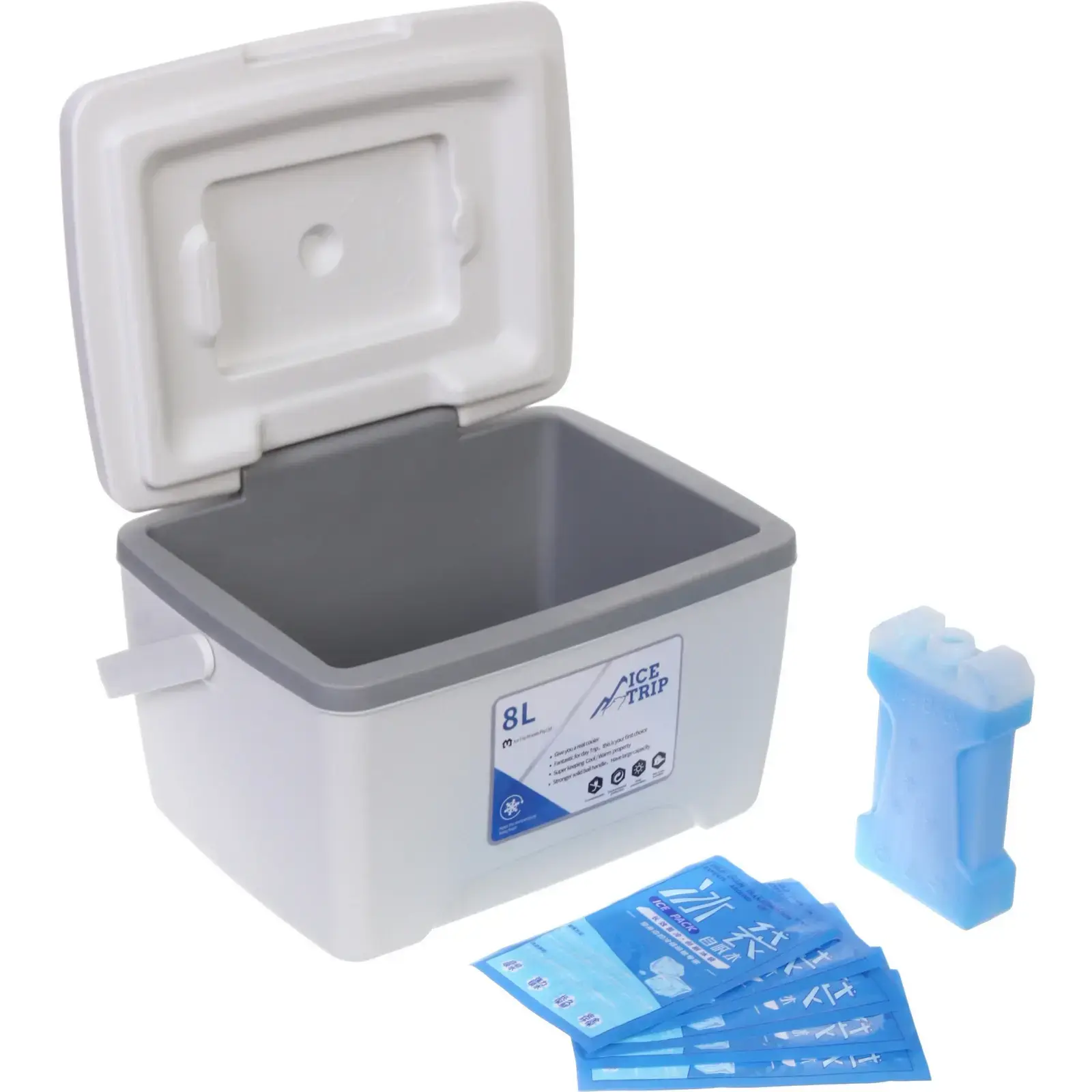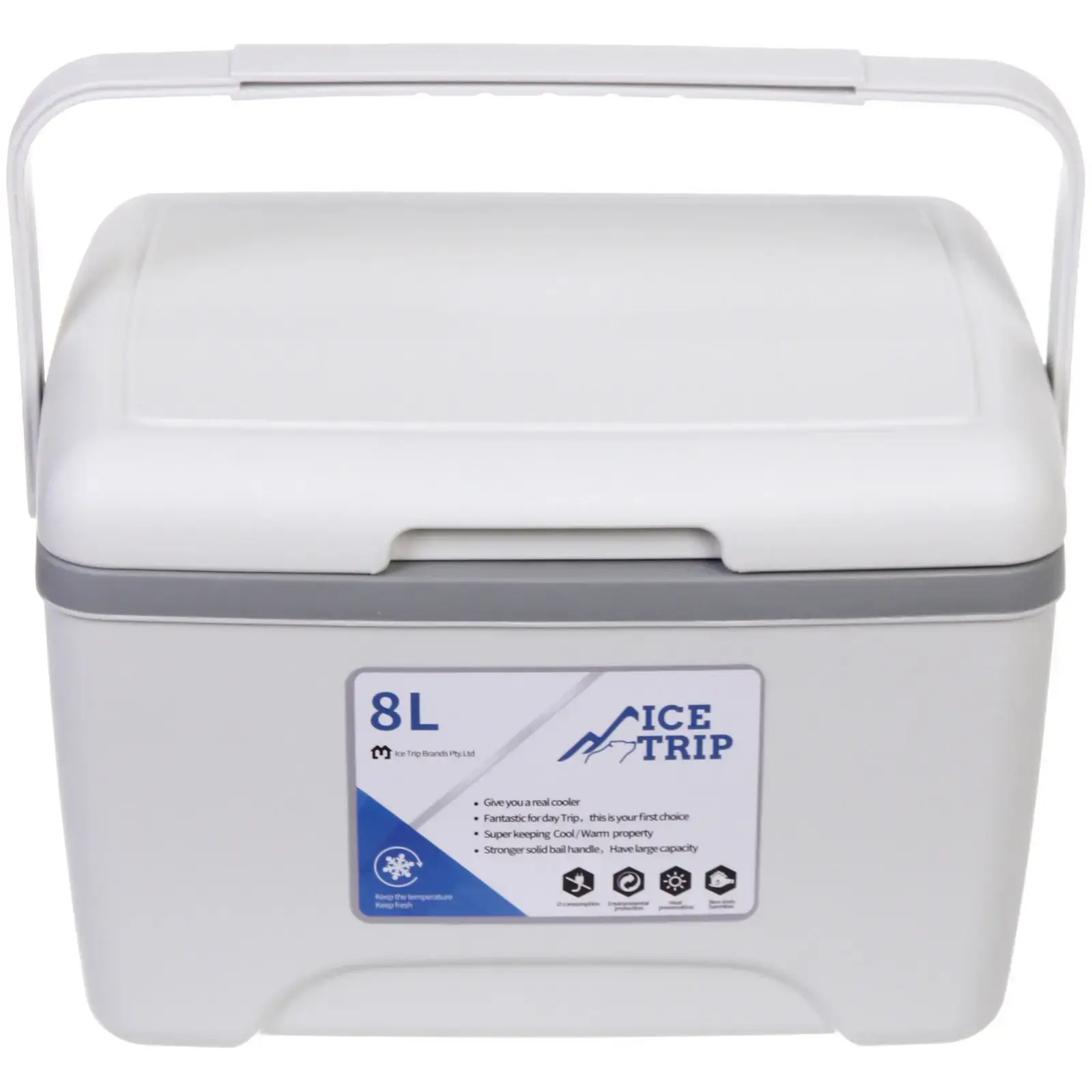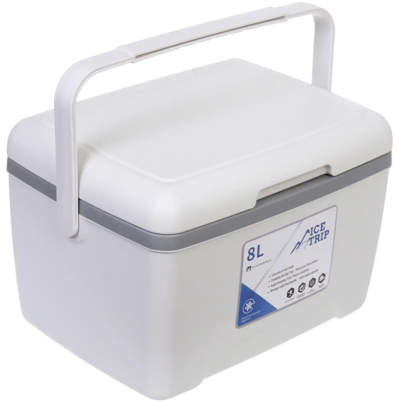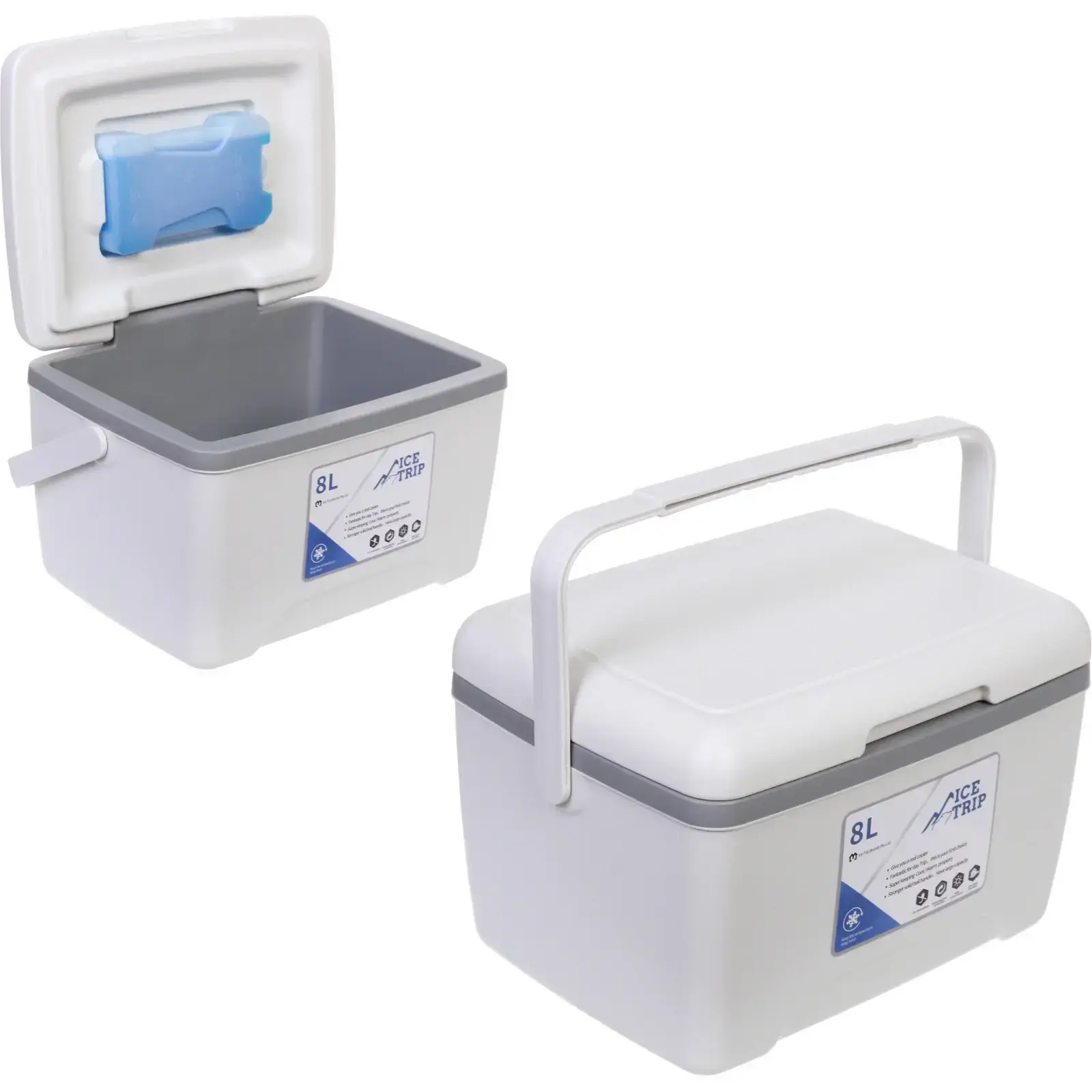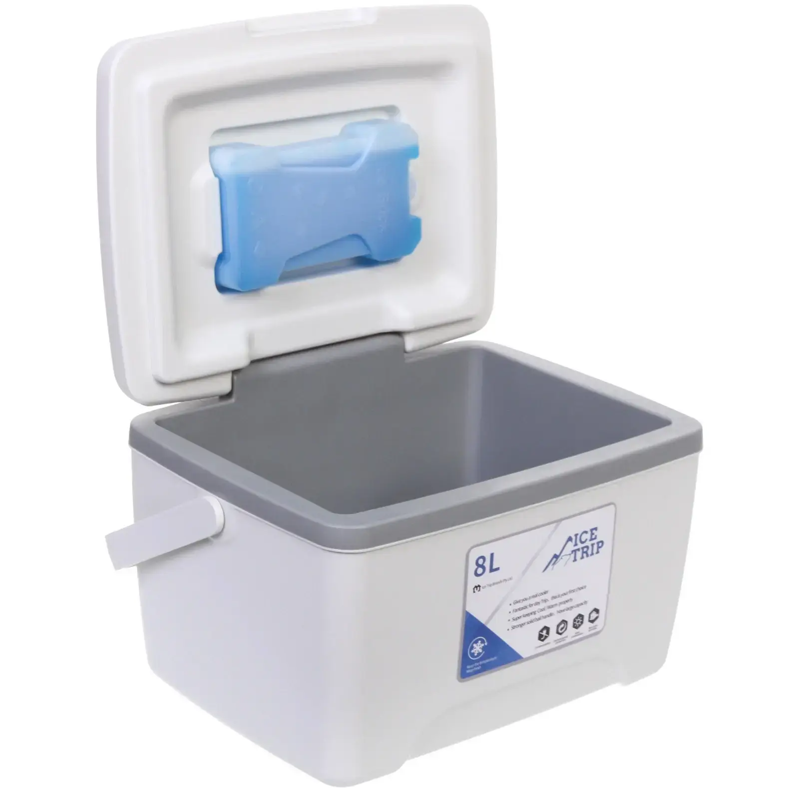 Контейнер имеет прямоугольную форму с округлыми углами и белый цвет с серыми элементами, что делает его стильным и современным. Размеры контейнера позволяют удобно размещать его в холодильнике или в автомобиле. Не упустите возможность сделать вашу жизнь более комфортной с помощью этого изотермического контейнера!