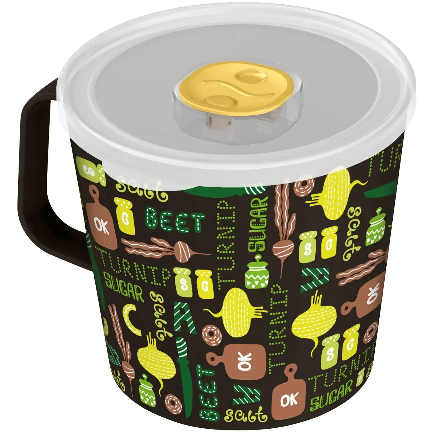 Герметичный контейнер-кружка с крышкой сохранит температуру блюд и защитит от проливания. Идеален для разогрева в микроволновке, хранения обедов и использования в поездках.