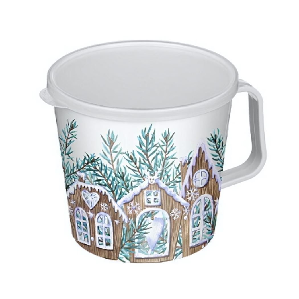 Представляем вашему вниманию контейнер-кружку объемом 750мл, который станет незаменимым помощником в хранении и транспортировке продуктов. Его стильный белый цвет и декоративный рисунок в виде зимнего домика с еловыми ветками добавят уют в вашу кухню и сделают процесс сервировки более приятным.