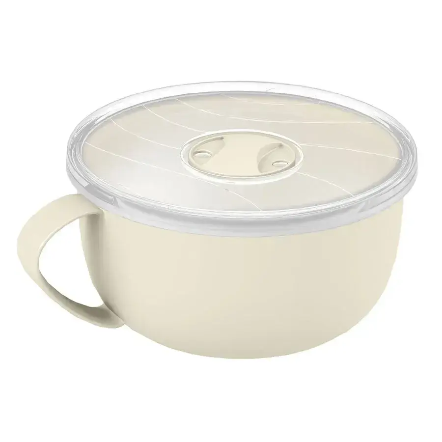 Контейнер-кружка 0,5л с герметичным клапаном для горячих напитков, пластик, бежевый