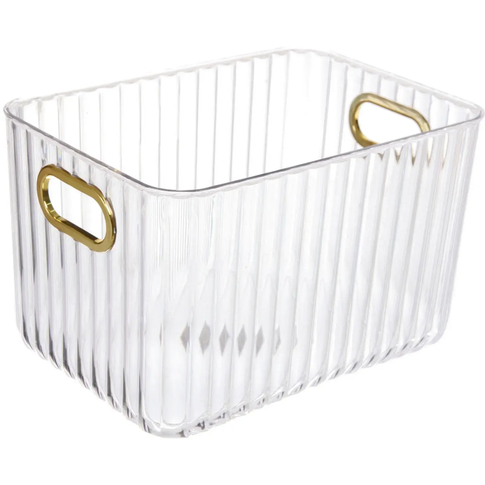 Контейнер подходит для хранения различных предметов: от игрушек и косметики до кухонных принадлежностей. Благодаря двум удобным золотистым ручкам, вы сможете легко переносить его, что делает его идеальным для использования в любом помещении. Размеры контейнера 26х18.5х16.2 см позволяют разместить его в шкафу, на полке или столе, не занимая много места.