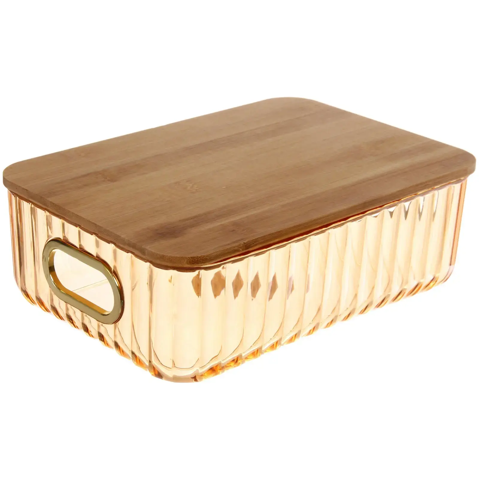 Контейнер выполнен из качественного пластика, что обеспечивает его долговечность и легкость в уходе. Бамбуковая крышка не только эстетична, но и функциональна, защищая содержимое от внешних воздействий. Размеры контейнера 26х18.5х8.5 см делают его идеальным для хранения на полках, в шкафах или на столах. Используйте контейнер «БРАМИНГЕМ» для упорядочивания вашего пространства и наслаждайтесь комфортом и удобством!