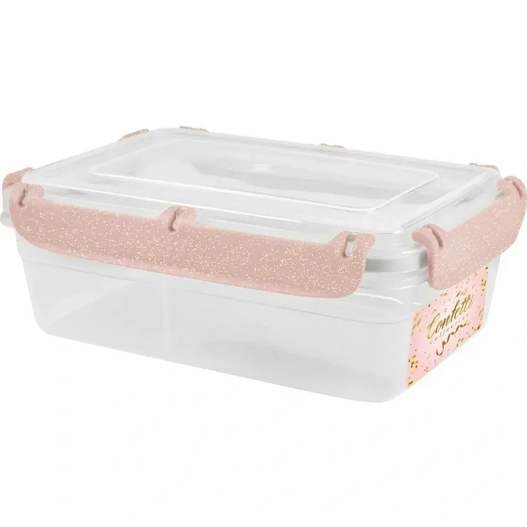 Ищете идеальное решение для хранения? Контейнер 1,4л с защелками «Confetti» — это не только практичное, но и стильное решение для вашего дома. Его прозрачный материал позволяет видеть содержимое, а розовые ручки с блестками добавляют яркий акцент в интерьер. Этот контейнер станет незаменимым помощником на кухне и в быту.