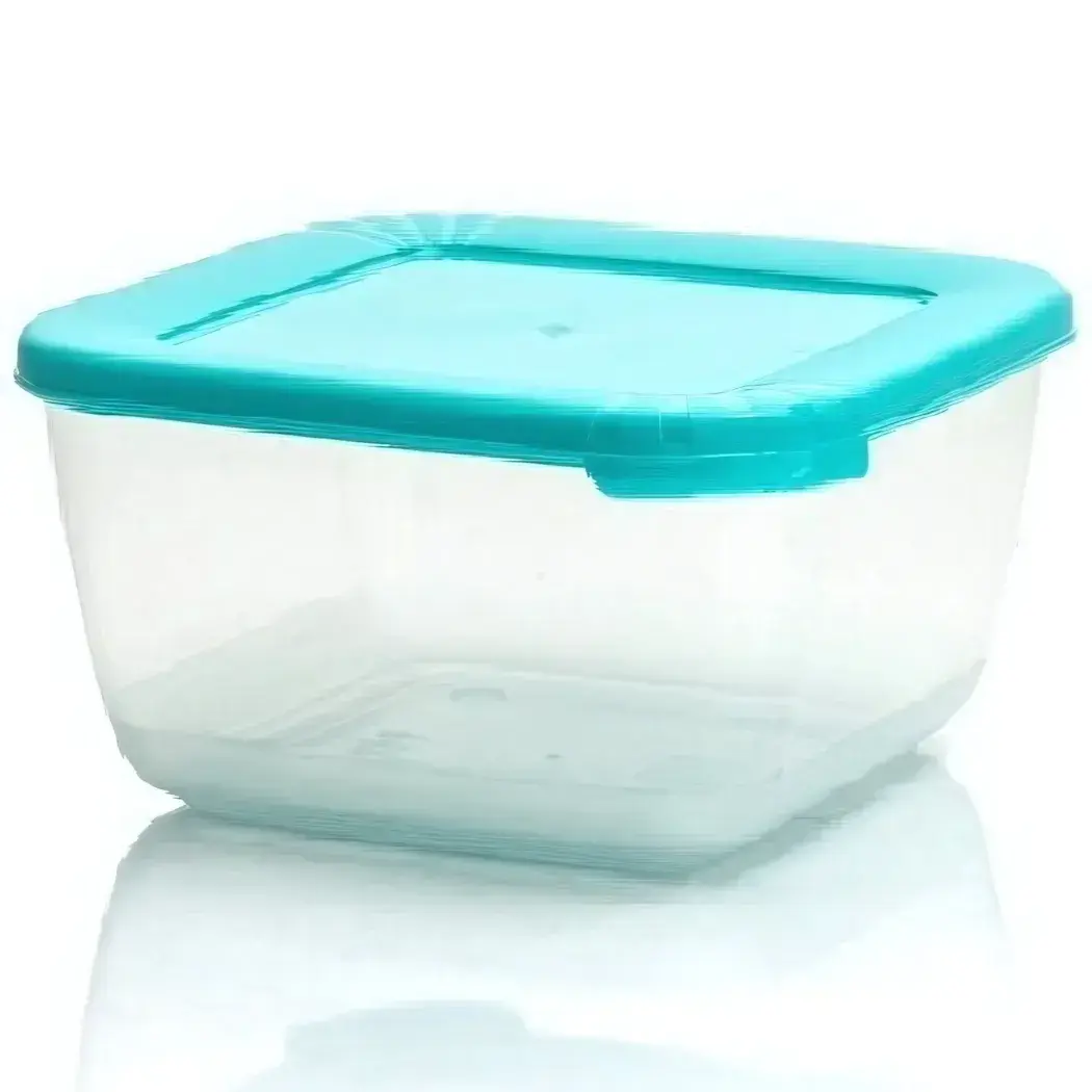 Контейнер имеет квадратную форму и прозрачные стенки, что позволяет видеть содержимое без необходимости открывать его. Крышка контейнера выполнена в светло-голубом цвете и обеспечивает надежное закрытие. Размер контейнера составляет 0,46 литра, что идеально подходит для хранения небольших порций пищи.