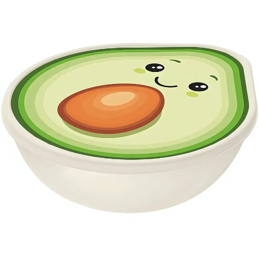 Контейнер выполнен из 100% перерабатываемого пластика, что делает его экологически чистым выбором. Его светло-бежевый цвет и дружелюбный дизайн с авокадо делают его привлекательным для детей и взрослых. Размер контейнера позволяет удобно хранить его в холодильнике или на полке, не занимая много места.