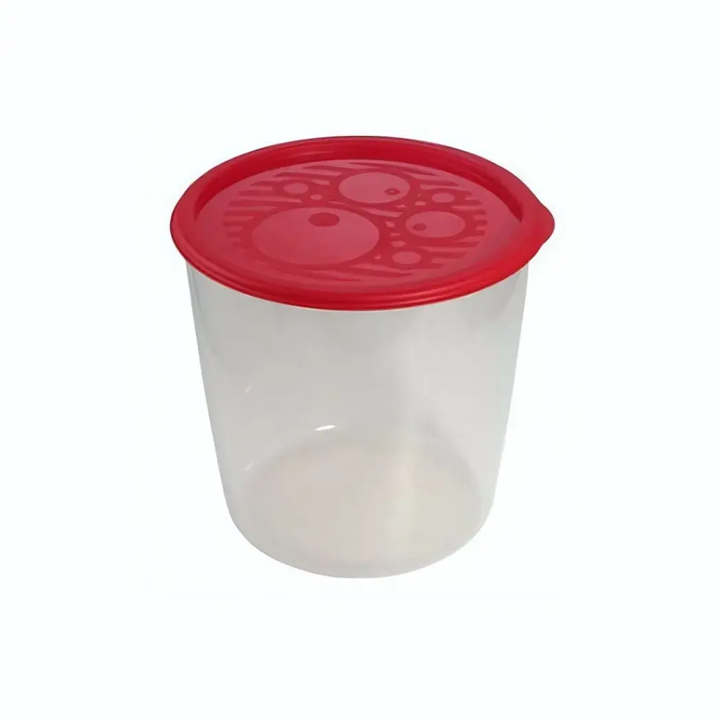 Объём 4,7 литра оптимален для хранения стандартных порций. Прозрачный корпус из пищевого пластика позволяет контролировать остатки продуктов, а яркая красная крышка создаёт визуальный акцент в кухонном пространстве. Цилиндрическая форма обеспечивает устойчивость на полках и равномерное охлаждение содержимого.