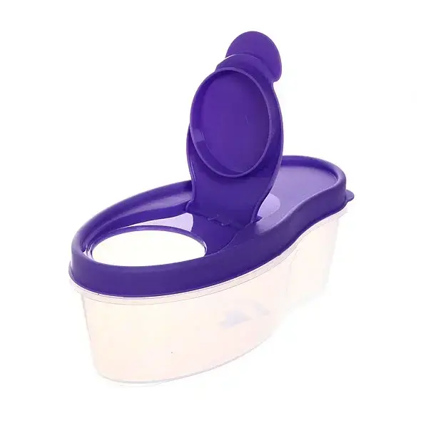 - Фиолетовая крышка с углублением для удобного открывания делает использование контейнера еще более комфортным.