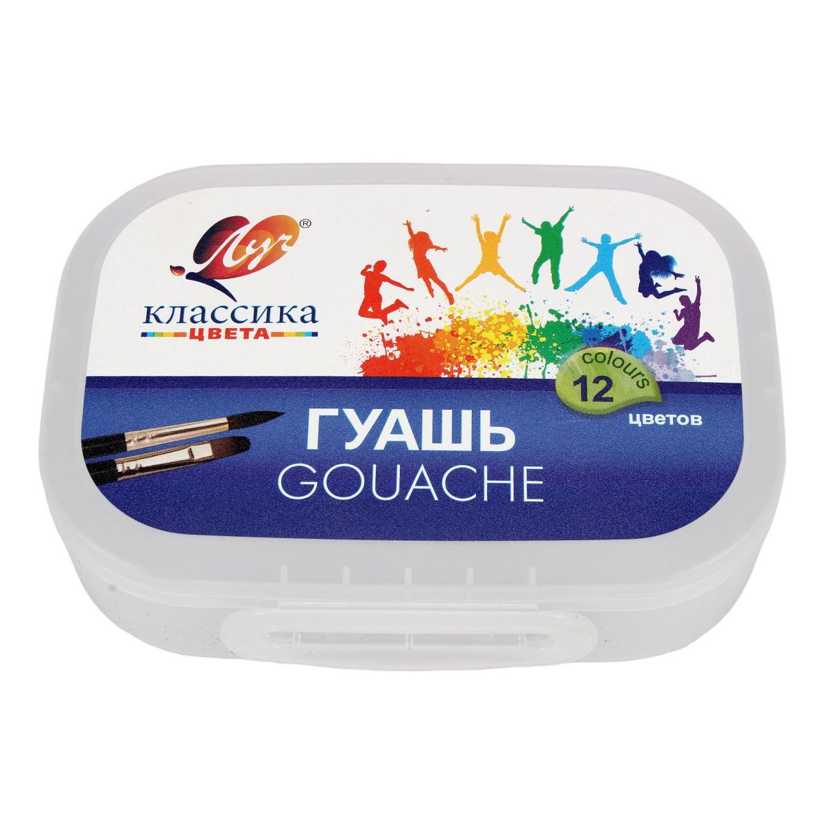 - 12 ярких цветов гуаши охватывают широкий спектр оттенков: от теплых красных до холодных синих, позволяя реализовать любые художественные идеи.
