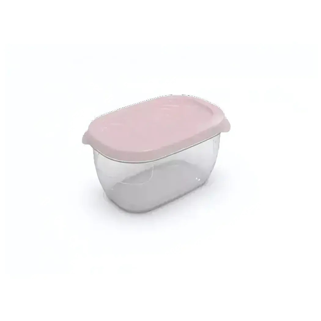 Контейнер изготовлен из высококачественного пластика, безопасного для контакта с пищевыми продуктами. Прозрачные стенки позволяют легко видеть содержимое, а мягкая розовая крышка создает приятное тактильное ощущение при использовании.