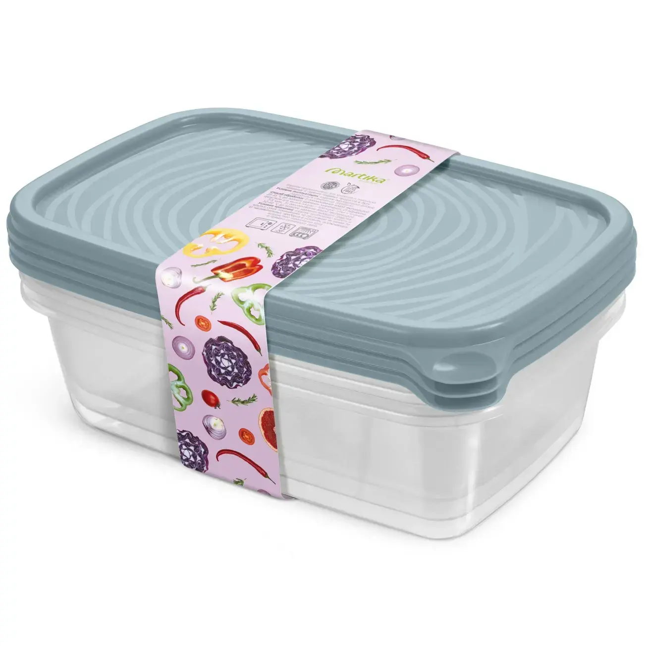 Прямоугольная форма контейнеров позволяет оптимально использовать пространство холодильника. Серо-голубой цвет крышек придает набору элегантный вид и легко вписывается в любой интерьер кухни.