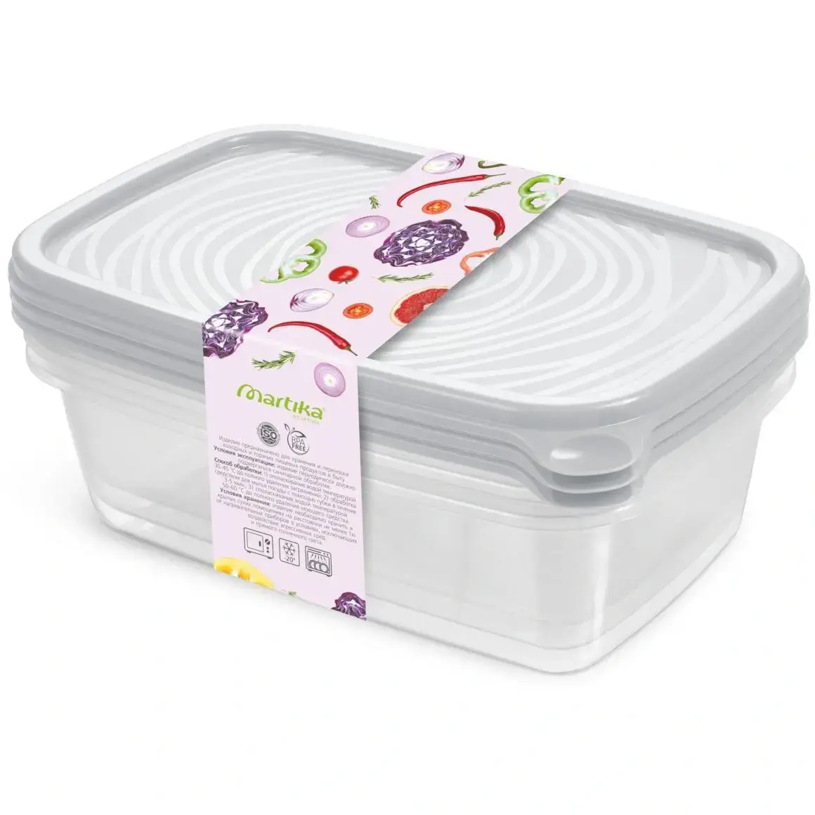 Светло-серый цвет крышек придает набору элегантный внешний вид, а прозрачные стенки позволяют легко видеть содержимое. Каждый контейнер имеет оптимальный размер для хранения различных продуктов – от салатов до полуфабрикатов.