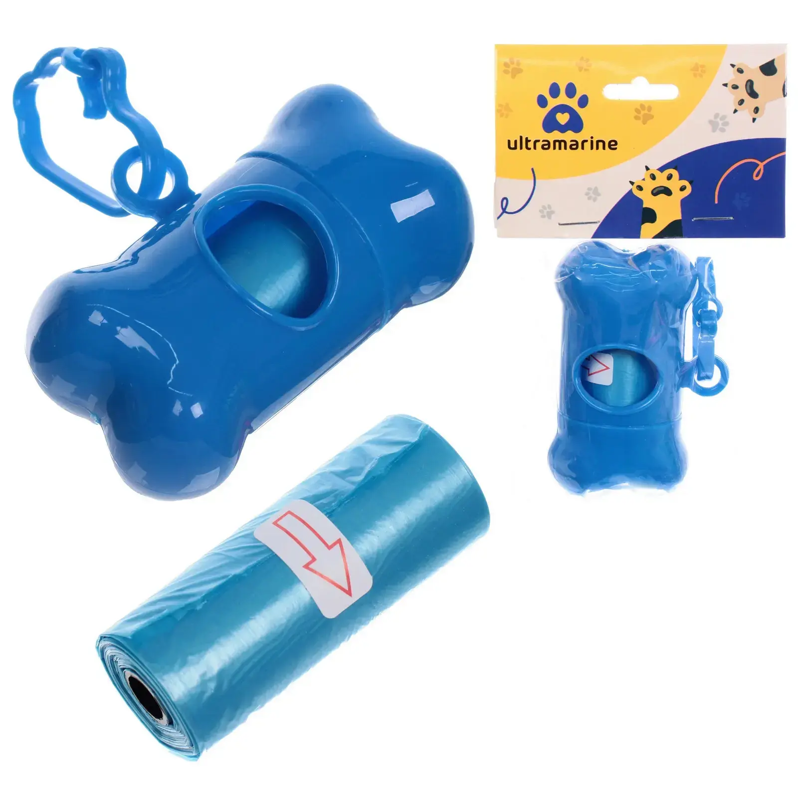 Контейнер для пакетов «Ultramarine» с карабином, форма кости, голубой цвет, ПВХ/пластик