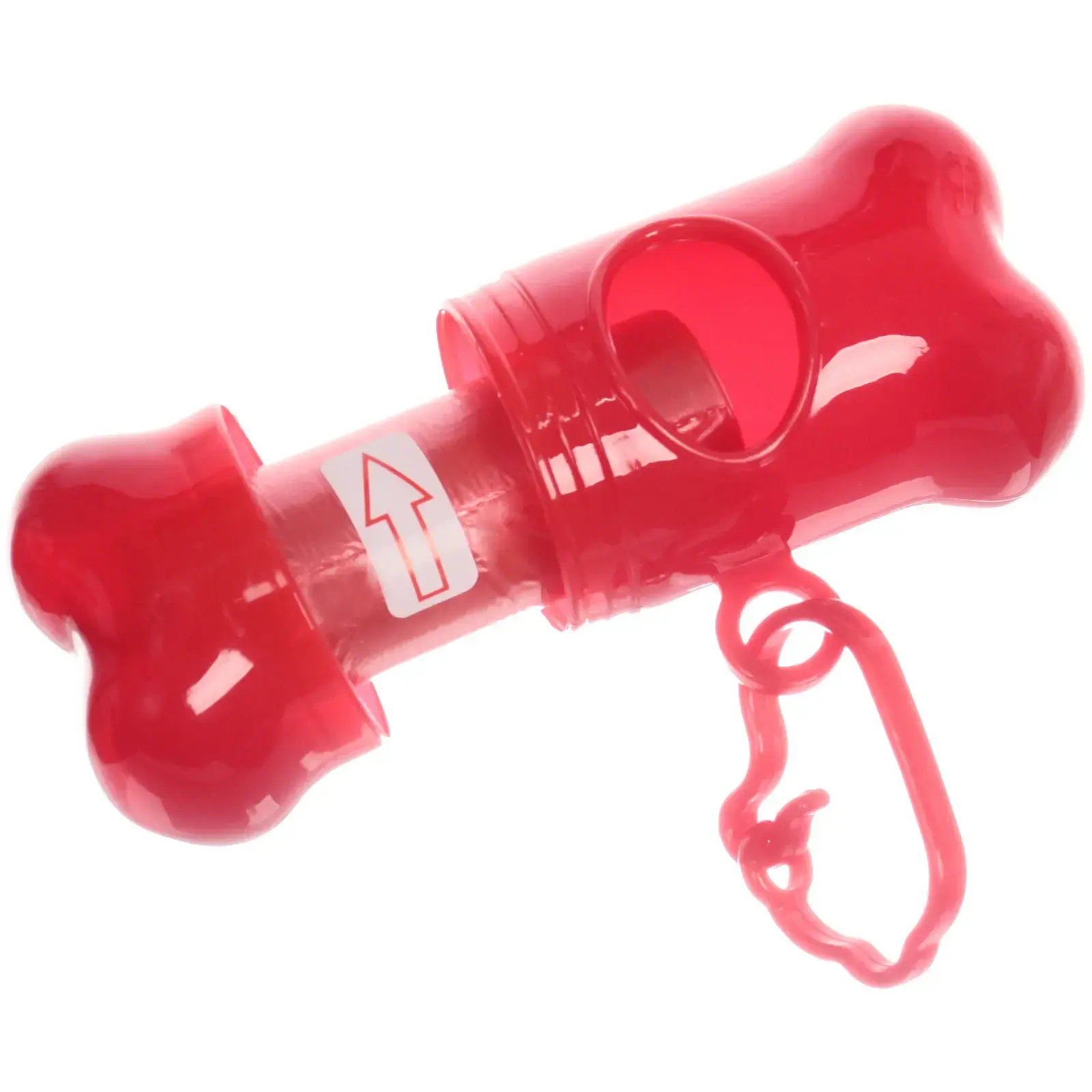 Контейнер выполнен в форме кости и оснащен карабином, что позволяет прикрепить его к поводку, сумке или ремню. Это делает его идеальным спутником для прогулок. Внутри контейнера находится рулон с гигиеническими пакетами, которые легко извлекаются через специальное отверстие. Благодаря компактным размерам, контейнер удобно носить с собой, он поместится даже в карман.
