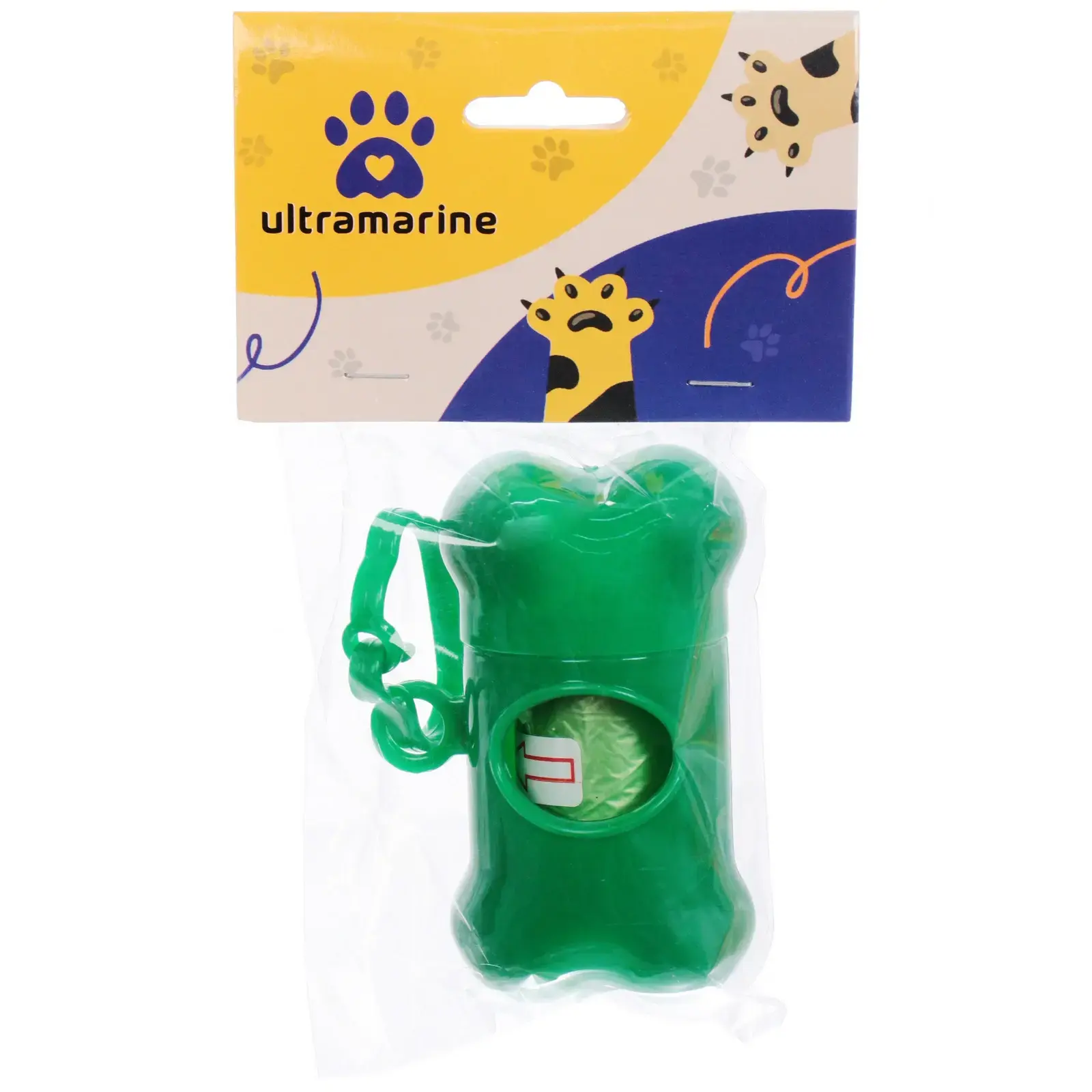 Прогулки с питомцем станут проще благодаря практичному контейнеру 'Ultramarine'. Стильный дизайн в форме кости и яркий зеленый цвет делают аксессуар не только функциональным, но и привлекательным.