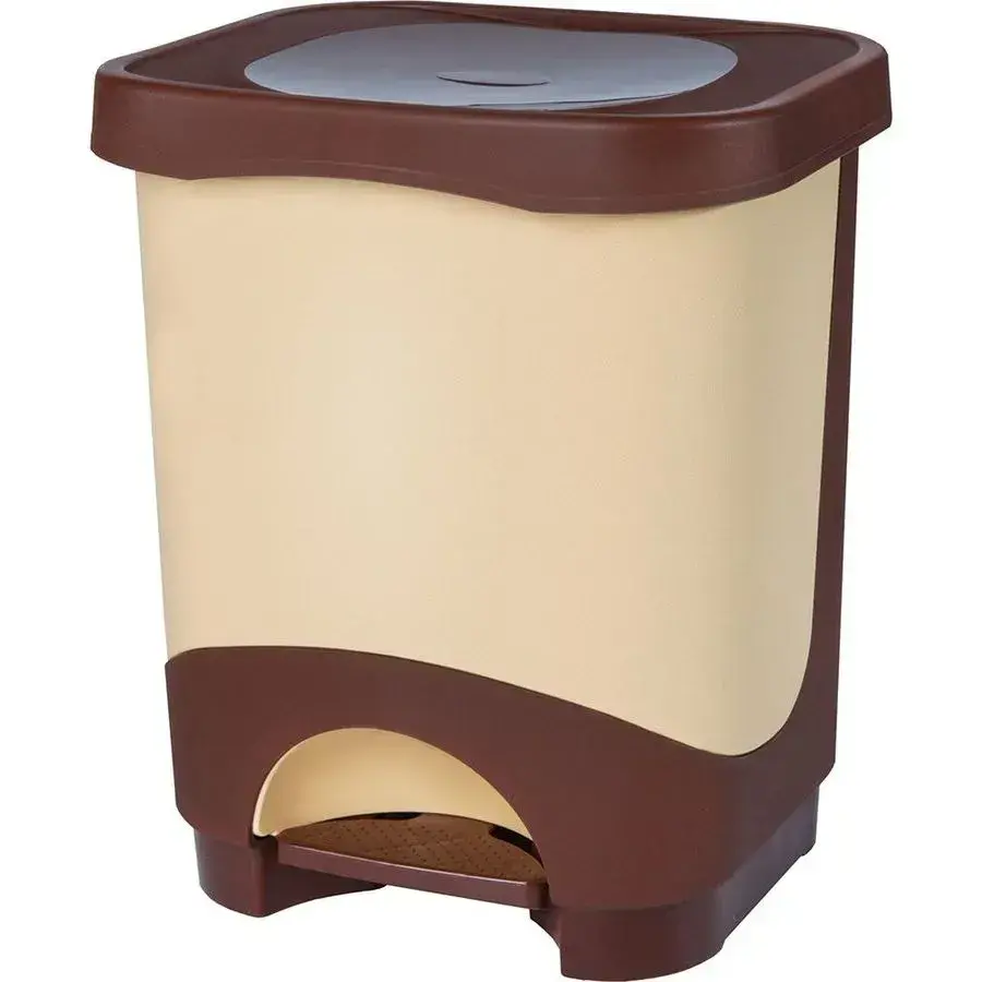 Контейнер для мусора с педалью 'Бинго' 18л, бежевый/коричневый, пластик