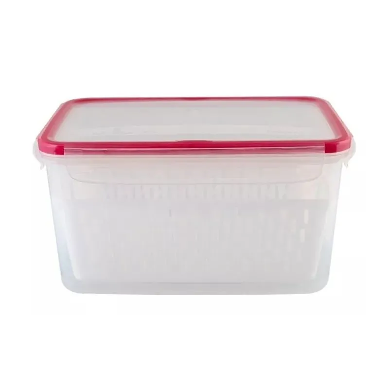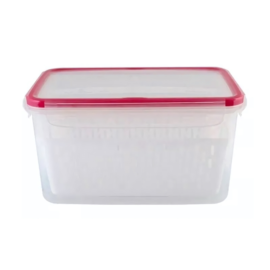 Надёжная герметизация: Плоская прозрачная крышка с красной окантовкой плотно закрывается, защищая содержимое от посторонних запахов, влаги и пыли. Прозрачная крышка позволяет быстро идентифицировать содержимое, не открывая контейнер.