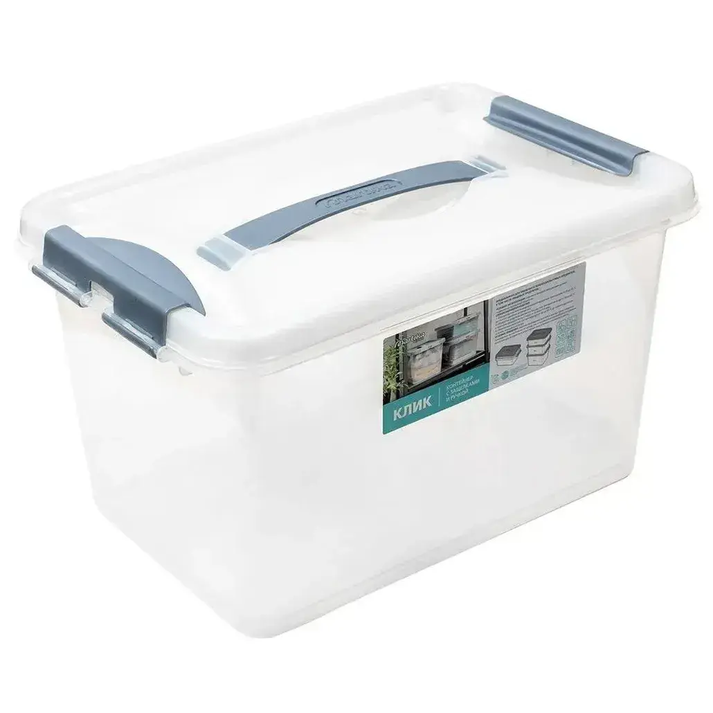 Контейнер герметичный с защелками «Клик С274ПРО», 10л, прозрачный, пластик, ручка для переноски