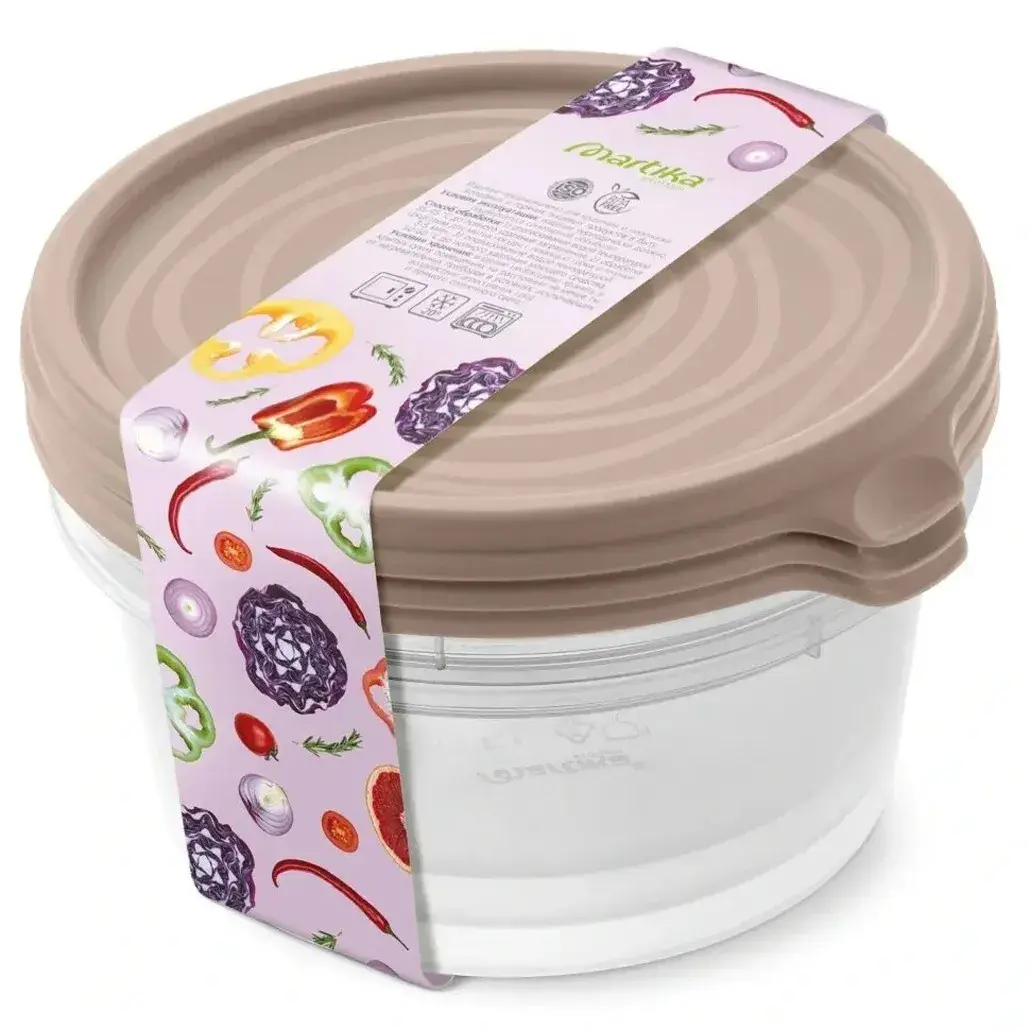 Элегантный цвет мокко впишется в любой интерьер и дополнит вашу кухонную утварь. Круглая форма обеспечивает удобное размещение в холодильнике и шкафах.