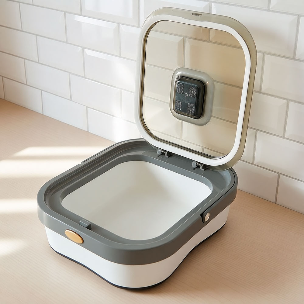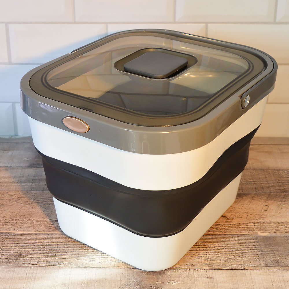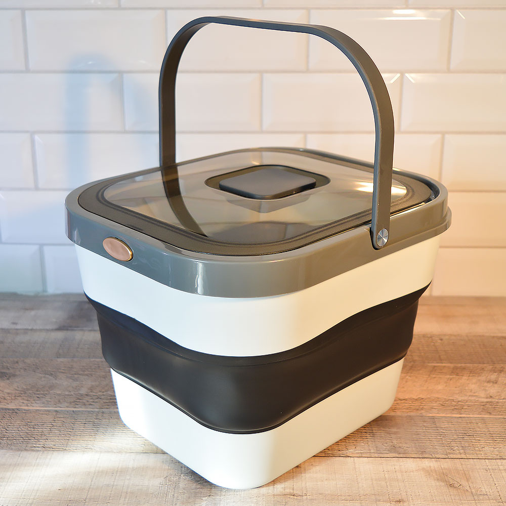 Складной силиконовый контейнер помогает организовать пространство на кухне и в доме, экономя место и упрощая повседневные задачи. В разложенном виде он вместителен и практичен, а после использования легко складывается, занимая минимум пространства в шкафу или на полке.