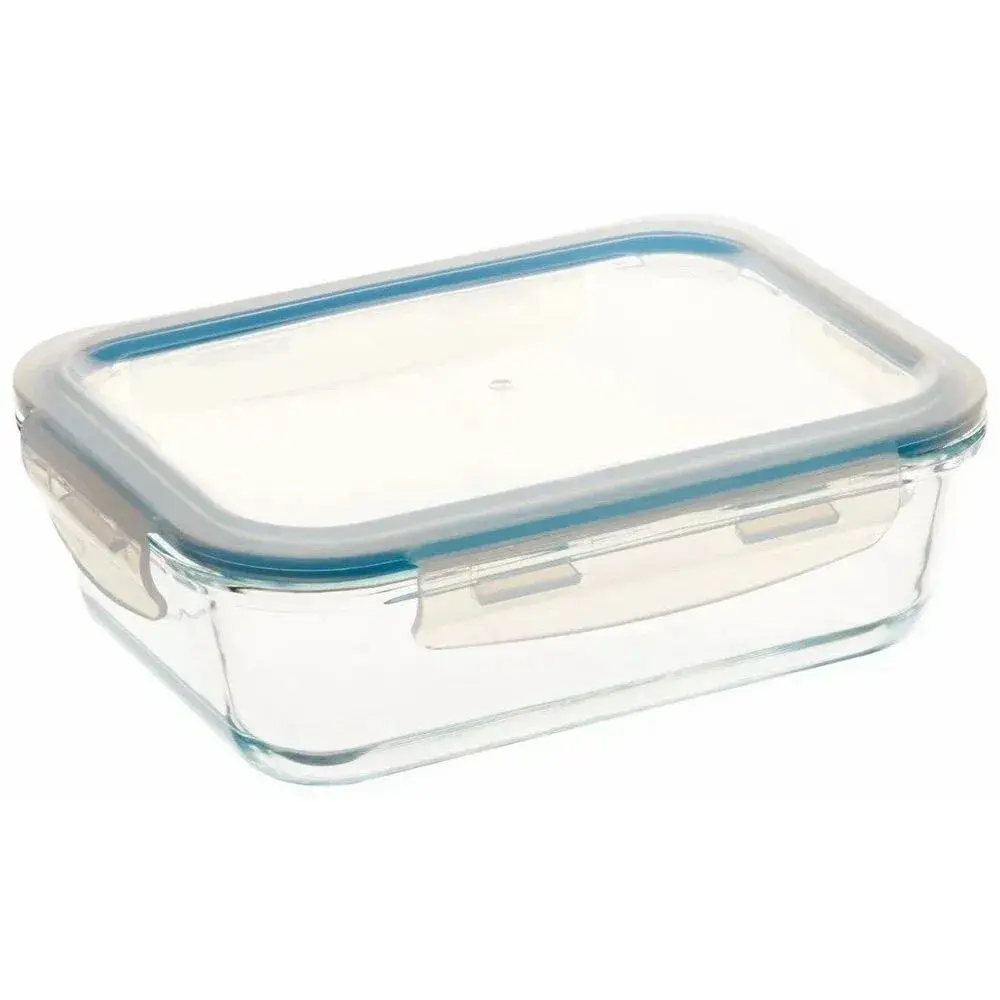 Контейнер стеклянный герметичный 640мл с синей крышкой, прямоугольный, для хранения продуктов