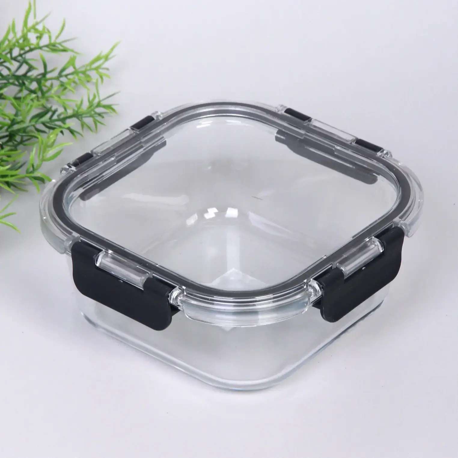- Герметичность: крышка с черными пластиковыми зажимами обеспечивает надежное закрытие.
