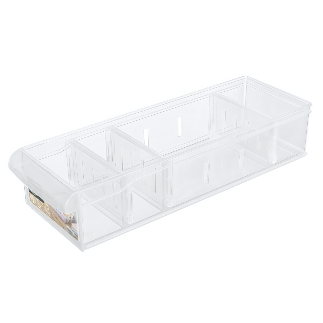 Прозрачный контейнер с регулируемыми секциями создан для тех, кто ценит порядок и функциональность. Меняйте размер отделений под свои нужды — от мелкой фурнитуры до крупных аксессуаров.