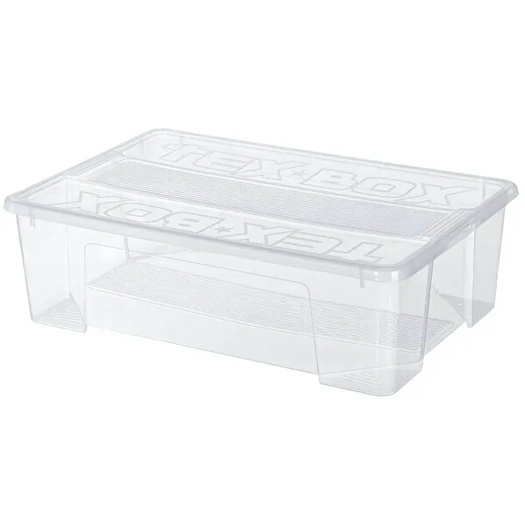 Контейнер «TEX-BOX» с крышкой, прозрачный пластик, 57х38х17см, 28л, низкий для хранения под кроватью