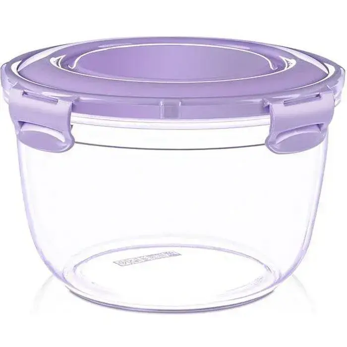 Контейнер герметичный круглый 625 мл, прозрачный с фиолетовой крышкой, для хранения продуктов