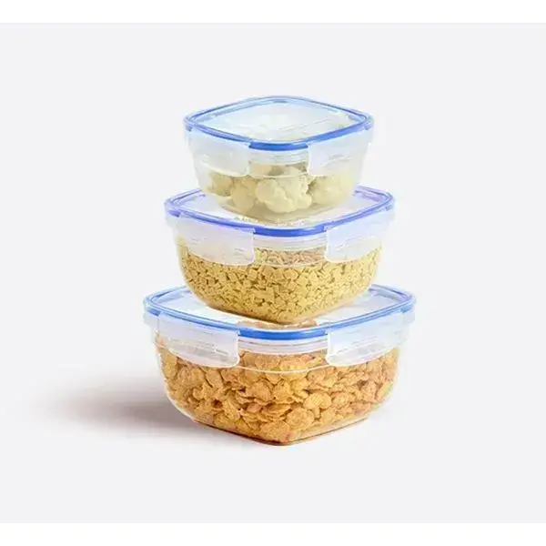 Контейнеры воздухонепроницаемые набор 3шт, 500/900/1500 мл, квадратные, пластик, герметичные крышки