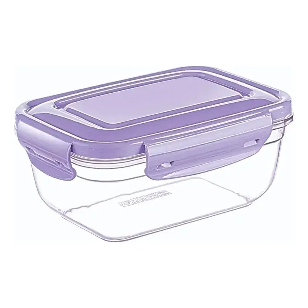 Изготовлен из высококачественного пластика, безопасного для хранения пищевых продуктов. Крышка оснащена удобными фиксаторами светло-фиолетового цвета, которые обеспечивают надежное закрытие. Прямоугольная форма с закругленными углами делает контейнер удобным для мытья и хранения.