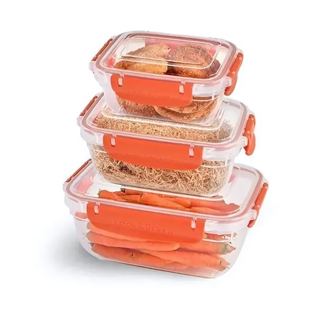 Храните продукты свежими и организованными с помощью набора стеклянных контейнеров "Мастер". Герметичные крышки с удобными оранжевыми защелками сохраняют свежесть содержимого.