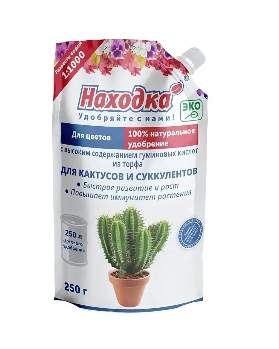 Удобрение органическое «Находка» для кактусов и суккулентов, концентрат 250г на 250л, гуминовые кислоты