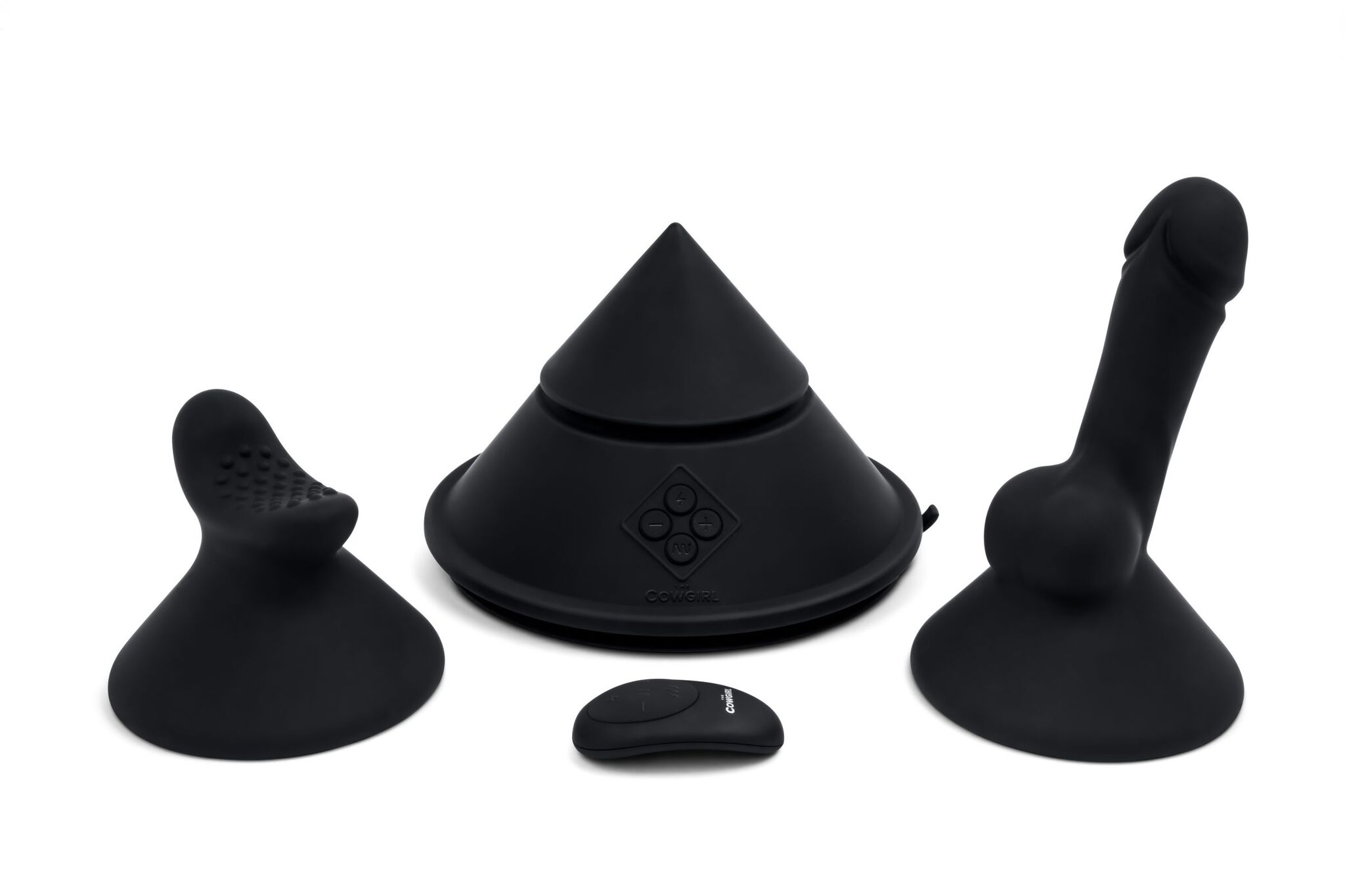 Конусный вибромассажер Cowgirl Cone, черный, силикон, 2 насадки