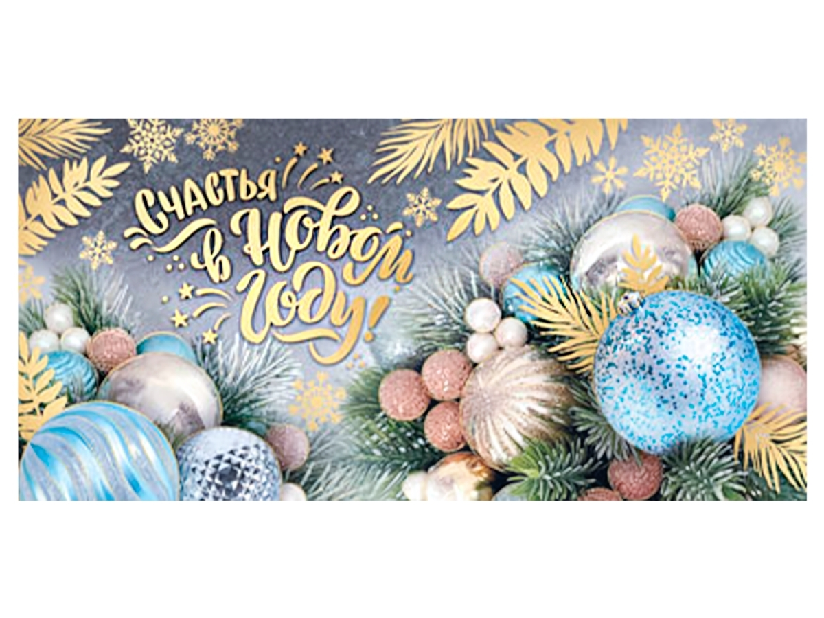 Конверт для денег, золотая фольга, 170х82 мм, новогоднее пожелание «счастья в новом году», плотный картон