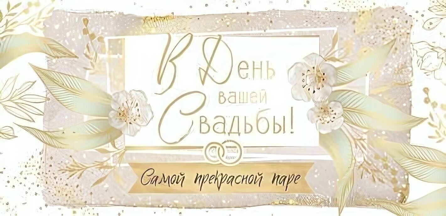 Конверт размером 170х82 мм удобен для размещения купюр любого номинала. Декоративная рамка с цветочным орнаментом и стилизованными кольцами добавляет символики бракосочетания. Не требует дополнительной упаковки — просто вложите денежный подарок и дополните теплыми пожеланиями.