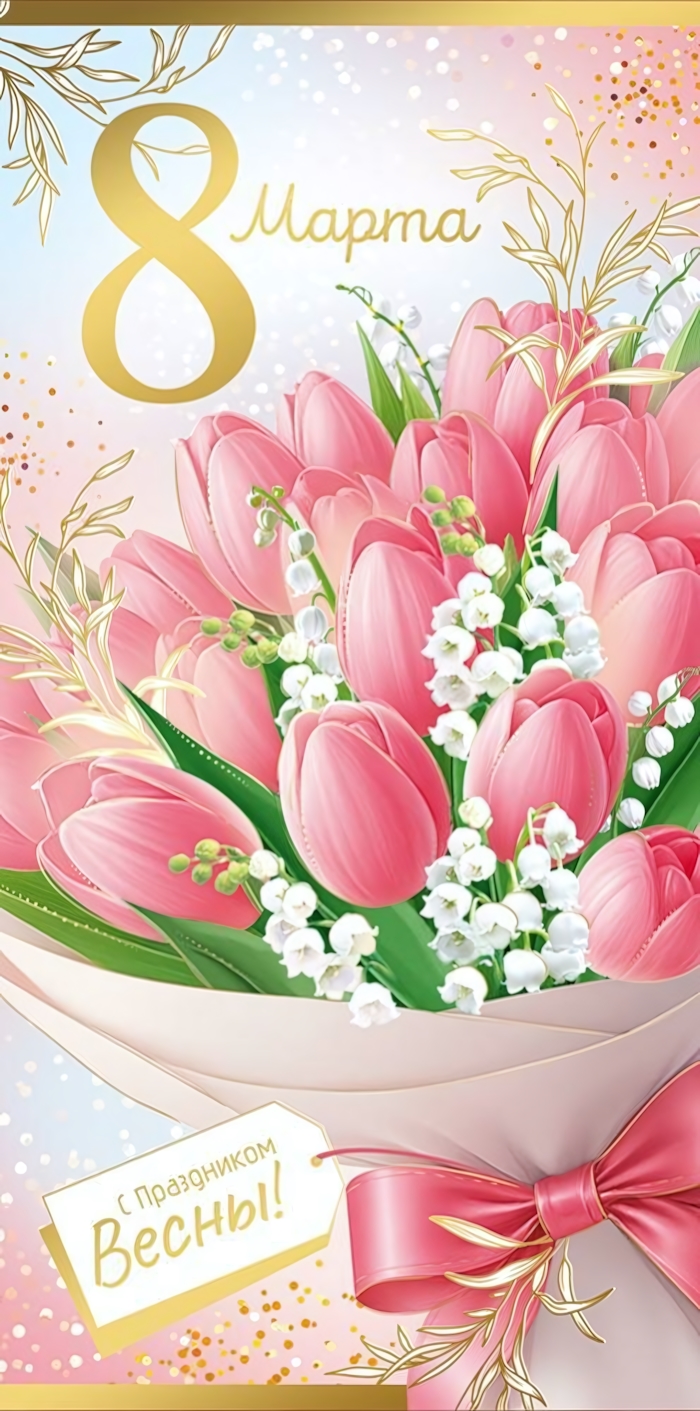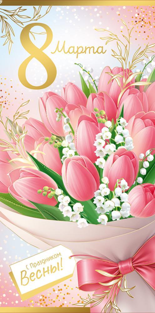 Конверт для денег «8 марта!» — это красивое и аккуратное решение для вручения денежного подарка в весенний праздник. Нежный букет тюльпанов с золотистыми элементами создает атмосферу тепла, заботы и внимания, а оформление с фольгированными деталями придает подарку особую торжественность.