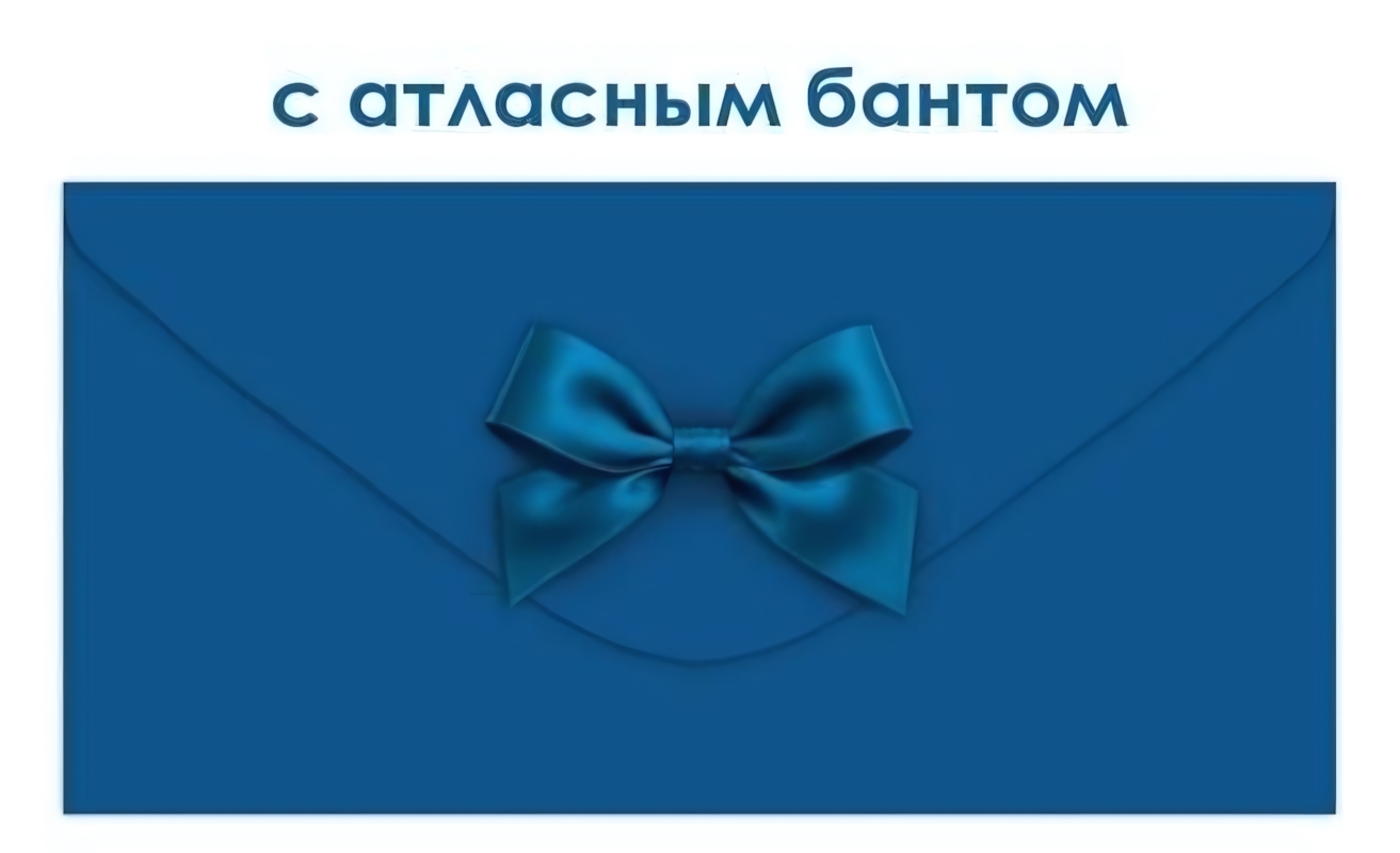 Размер конверта — 168х84 мм, формат евро. Изготовлен из картона, дополнен декоративным атласным бантом по центру. Конструкция удобна для вложения купюр и сохраняет аккуратный внешний вид при вручении.