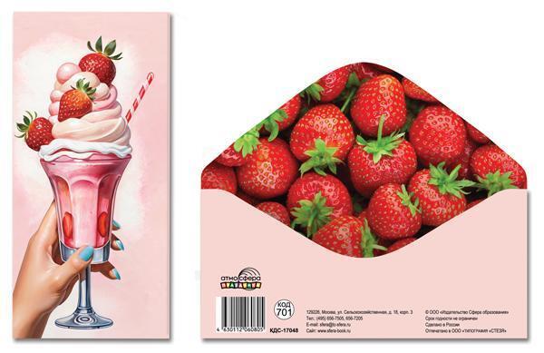 Конверт для денег 'Клубничный коктейль', плотный картон, без надписи, коллекция Сфера