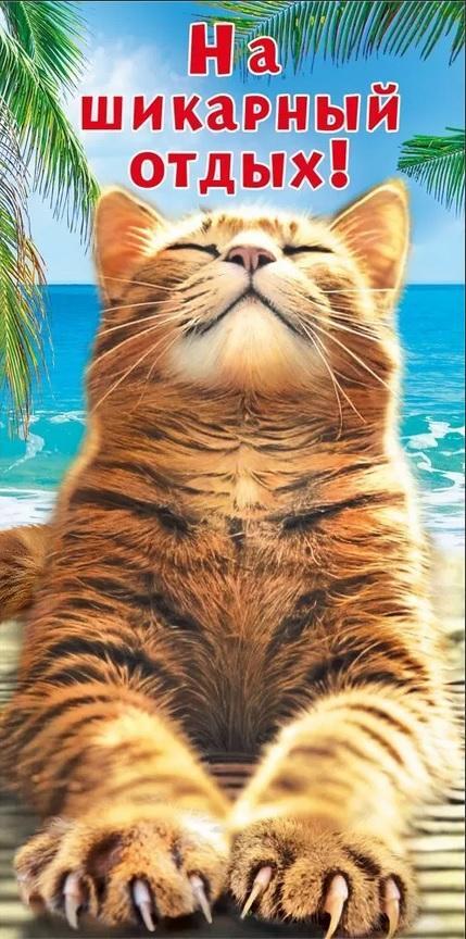 Подарите денежный подарок в стильном оформлении, которое создаст праздничное настроение еще до вскрытия конверта. Яркий дизайн с умиротворённым котом на фоне тропического пейзажа идеально подходит для свадеб, юбилеев и отпускных сюрпризов.