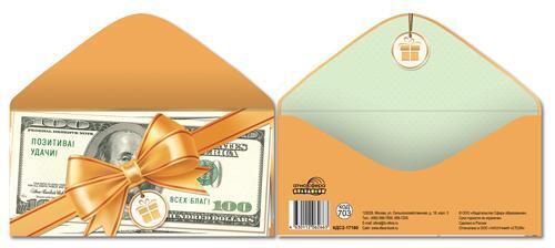 Конверт для денег "Позитивные пожелания", оранжевый, с бантом и фольгой