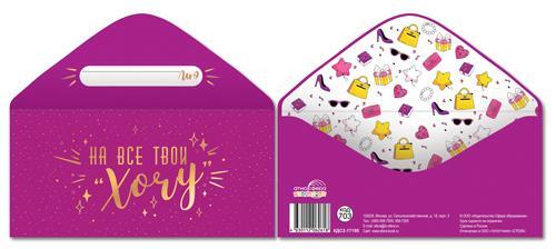 Конверт для денег с золотой фольгой, фиолетовый, принт «аксессуары» — стильный подарок