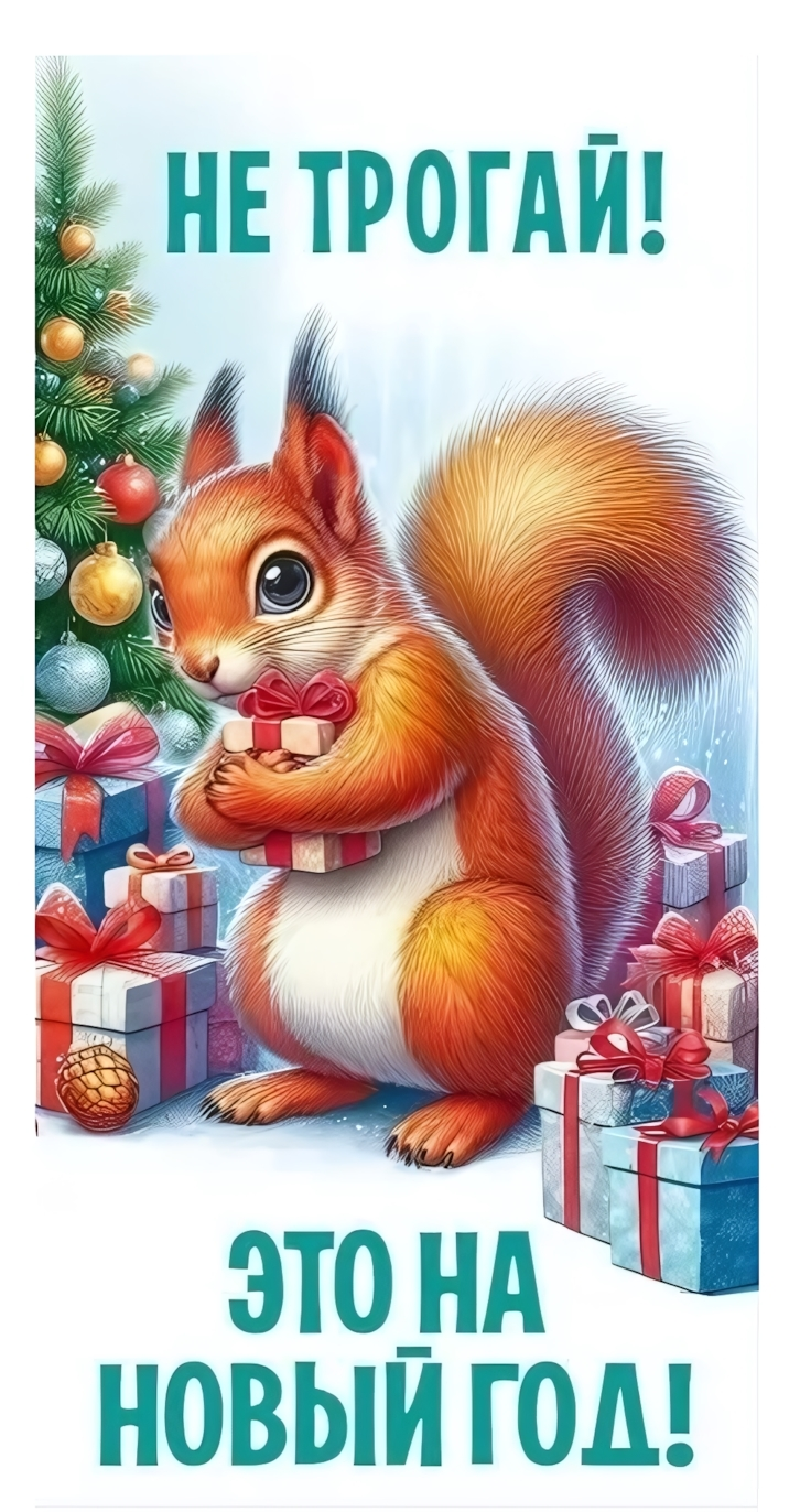 Подарите своим близким особое настроение с этим праздничным конвертом для денег. Забавный дизайн с яркой белочкой, пушистым хвостом и подарками на фоне нарядной ёлки вызывает улыбку и передаёт атмосферу ожидания зимнего праздника. Шутливая надпись «Не трогай! Это на Новый год!» моментально вовлекает в игру, напоминая о доброй традиции готовить сюрпризы заранее.