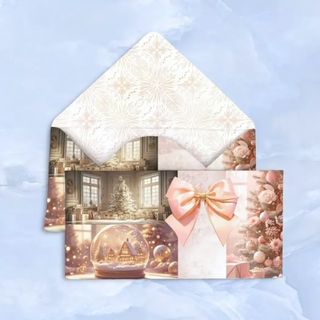 Конверт для денег 'Новогодний', картон, светло-розовый/золотой, праздничный дизайн